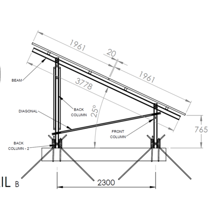 Configuratia 2x3 permite montarea a pana la 6 panouri fotovoltaice, fiind potrivita pentru instalatii la sol sau pe platforme dedicate. Unghiul de 25 grade este ales pentru a asigura un randament energetic bun pe parcursul intregului an, fara a compromite stabilitatea structurii.