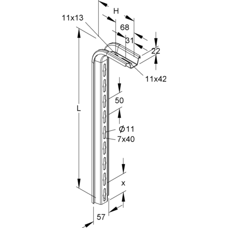 Dimensiuni (dimensiuni aprox.) H x L x L : 132 x 57 x 563 mm