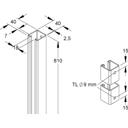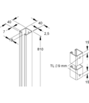 Suport, profil C, latime fanta 18 mm, 40x40x810 mm, orificiu de imersie, otel, electrozincat conform DIN EN ISO 2081 Suport de pardoseala, din profil C 2988, suprafete vizibile vopsite electrostatic cu pulbere, cu orificii centrale de imersie pe ambele parti pana la capatul capetelor de profil, impreuna cu dispozitivul de sustinere G in zonele de sustinere SB in zonele de sustinere GSB fixarea pe pervaz nu este posibila.