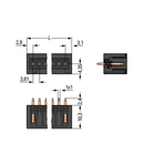 THR male header; 1.0 x 1.0 mm solder pin; straight; 100% protected against mismating; Pin spacing 3.81 mm; 2-pole; black Wago