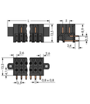 THR male header, 2-row; 0.8 x 0.8 mm solder pin; angled; 100% protected against mismating; Threaded flange; Pin spacing 3.5 mm; 2 x 15-pole; black Wago