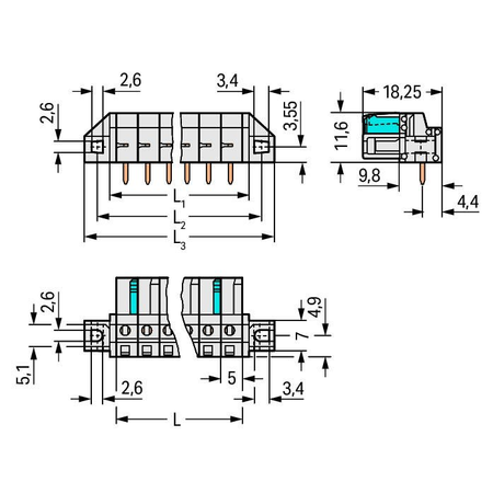 THT female header; 0.6 x 1.0 mm solder pin; angled; 100% protected against mismating; clamping collar; Pin spacing 5 mm; 14-pole; light gray Wago