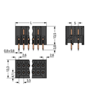 Ratings per: IEC/EN 60664-1; Tesiune nominala (III/3): 80; V Tensiune nominala de supratensiune (III/3): 2,5; kV Tensiune nominala (III/2): 160; V Tensiune nominala de supratensiune (III/2): 2,5; kV Tesiune nominala (II/2): 250; V Tensiune nominala de supratensiune (II/2): 2,5; kV Curent nominal: 10; A Legend (ratings): (III / 2) ≙ Overvoltage category III / Pollution degree 2; Tensiune nominala UL (Use Group B): 150; V Curent nominal UL (Use Group B): 10; A Tensiune nominala UL (Use Group C): 50; V Curent nominal UL (Use Group C): 10; A Certificari: UL 1059; Tensiune nominala CSA (Use Group B): 150; V Curent nominal CSA (Use Group B): 12; A Numar poli: 12; Total number of potentials: 12; Numar tipuri de conexiuni: 1; Numar nivele: 2; Distanta intre pini: 3,5 mm / 0.138 inch; Latime: 22,5 mm / 0.886 inch; Inaltime: 17,3 mm / 0.681 inch; Inaltime de la fata: 13,5 mm / 0.531 inch; Adancime: 13,3 mm / 0.524 inch; Lungimea pinului de contact: 3,8; mm Solder pin dimensions: 0,8 x 0,8 mm; Diametrul de gaurire cu toleranta: 1,2 (+0,1) mm; Tip contact (pluggable connector): Conector tata/fisa; Connector (connection type): for PCBs; Mismating protection: Yes; Mating direction to the PCB: 90; ° PCB contact: THT; Solder pin arrangement: over the entire male connector, in line; Number of solder pins per potential: 1; Culoare: black; Material group: I; Material izolator: Polyphthalamide (PPA GF); Flammability class per UL94: V0; Contact material: Cupru electrolitic(ECu); Contact plating: tin-plated; Fire load: 0,069; MJ Greutate: 3,3; g Temperatura lucru: -60 … +100 °C; Product Group: 3 (Multi Conn. System); Tip ambalare: BOX; Tara de origine: PL; GTIN: 4045454700010; Customs tariff number: 85366990990;
