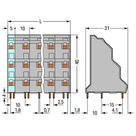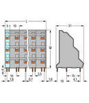 Triple-deck PCB terminal block; 2.5 mm²; Pin spacing 10 mm; 3 x 12-pole; CAGE CLAMP®; 2,50 mm²; gray Wago