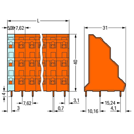 Triple-deck PCB terminal block; 2.5 mm²; Pin spacing 7.62 mm; 3 x 4-pole; CAGE CLAMP®; 2,50 mm²; orange Wago