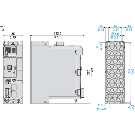 gama de produse: Altivar Machine ATV340 Tip produs sau componenta: Variator de viteza aplicatie specifica produsului: Machine mod de montare: Cabinet mount varianta: Standard version Port protocol de comunicatie: Serial Modbus card optional: modul de comunicare, Profibus DP V1 modul de comunicare, PROFINET modul de comunicare, DeviceNet modul de comunicare, CANopen modul de comunicare, EtherCAT numar faze in retea: 3 faze frecventa de alimentare: 50...60 Hz +/- 5 % [Us] tensiune nominala de alimentare: 380...480 V - 15...10 % curent nominal de iesire: 5,6 A putere motor kW: 3 kW pentru serviciu normal 2,2 kW pentru pentru sarcini grele putere motor hp: 3 CP pentru serviciu normal 3 CP pentru pentru sarcini grele filtru EMC: Class C3 EMC filter integrated grad de protectie IP: IP20 numar intrare discreta: 5 tip de intrare discreta: PTI programmable as pulse input 0…30 kHz, 24 V c.c. (30 V) DI1...DI5 cuplu de siguranţă, 24 V c.c. (30 V), impedanţă: 3.5 kOhm programabile number of preset speeds: 16 preset speeds numar iesire discreta: 2,0 tip de iesire discreta: Programmable output DQ1, DQ2 30 V c.c. 100 mA numarul intrarii analogice: 2 tip de intrare analogica: AI1 curent configurabil soft 0...20 mA, impedanţă: 250 Ohm, rezoluţie 12 biti AI1 sonda de temperatura configurabila cu soft sau senzor de nivel de apa AI1 tensiune configurabilă soft 0...10 V c.c., impedanţă: 31.5 kOhm, rezoluţie 12 biti AI2 tensiune configurabilă soft - 10...10 V c.c., impedanţă: 31.5 kOhm, rezoluţie 12 biti numarul iesirii analogice: 1 tip iesire analogica: Tensiune configurabilă soft AQ1 0...10 V c.c. 470 Ohm, rezoluţie 10 bits Curent configurabil soft AQ1 0...20 mA 500 Ohm, rezoluţie 10 bits numarul iesirii releu: 2 tensiune de iesire: <= tensiunea de alimentare tip releu iesire: Ieşiri releu R1A Ieşiri releu R1C 100000 cic Ieşiri releu R2A Ieşiri releu R2C 100000 cic curent maxim de comutatie: Relay output R1C pornit rezistiv sarcina, cos phi = 1 3 A la 250 V c.a. Relay output R1C pornit rezistiv sarcina, cos phi = 1 3 A la 30 V c.c. Relay output R1C pornit inductiv sarcina, cos phi = 0,4 si stanga/dreapta = 7 ms 2 A la 250 V c.a. Relay output R1C pornit inductiv sarcina, cos phi = 0,4 si stanga/dreapta = 7 ms 2 A la 30 V c.c. Relay output R2C pornit rezistiv sarcina, cos phi = 1 5 A la 250 V c.a. Relay output R2C pornit rezistiv sarcina, cos phi = 1 5 A la 30 V c.c. Relay output R2C pornit inductiv sarcina, cos phi = 0,4 si stanga/dreapta = 7 ms 2 A la 250 V c.a. Relay output R2C pornit inductiv sarcina, cos phi = 0,4 si stanga/dreapta = 7 ms 2 A la 30 V c.c. curentul minim de comutare: Relay output R1B 5 mA la 24 V c.c. Relay output R2C 5 mA la 24 V c.c. interfata fizica: RS 485 cu 2 fire tipul conectorului: 1 RJ45 metoda de acces: Slave Modbus RTU rata de transmisie: 4.8 kbit/s 9.6 kbit/s 19.2 kbit/s 38.4 kbit/s cadrul de transmisie: RTU numarul de adrese: 1…247 format date: 8 biti, configurabil impar, par sau fara paritate tip de polarizare: Fara impedanta 4 quadrant operation possible: Adevarat profil de control al motorului asincron: Constanta de cuplu standard Mod de cuplu optim Cuplu variabil standard profil de control al motorului sincron: Reluctance motor Permanent magnet motor grad de poluare: 2 conformitate cu IEC 61800-5-1 frecventa maxima de iesire: 0,599 kHz rampe de accelerare si decelerare: Reglabil liniar separat, de la 0,01 la 9999 s S, U sau personalizat compensare alunecare motor: Poate fi suprimat Automat indiferent de sarcina Not available in permanent magnet motor law Reglabil frecventa de comutare: 2...16 kHz reglabil 4...16 kHz cu frecventa de comutare nominala: 4 kHz franare sau imobil: Cu injectie c.c. Brake chopper integrated: Adevarat curent de linie: 6,6 A la 380 V (serviciu normal) 5,3 A la 480 V (serviciu normal) 8,4 A la 380 V (pentru sarcini grele) 6,6 A la 480 V (pentru sarcini grele) curent de linie: 8,4 A la 380 V without line choke (pentru sarcini grele) 6,6 A la 480 V without line choke (pentru sarcini grele) 6,6 A la 380 V with external line choke (serviciu normal) 5,3 A la 480 V with external line choke (serviciu normal) 5,1 A la 380 V with external line choke (pentru sarcini grele) 4,1 A la 480 V with external line choke (pentru sarcini grele) Curent maxim de intrare: 8,4 A Maximum output voltage: 480 V putere aparenta: 5,2 kVA la 480 V (serviciu normal) 5,5 kVA la 480 V (pentru sarcini grele) curent tranzitoriu maxim: 7,9 A in timpul 60 s (serviciu normal) 9,7 A in timpul 2 s (serviciu normal) 10,1 A in timpul 2 s (pentru sarcini grele) 8 A in timpul 60 s (pentru sarcini grele) conexiune electrica: Borna cu surub, capacitate de prindere: 1.5...4 mm² pentru line side Borna cu surub, capacitate de prindere: 4...6 mm² pentru DC bus Borna cu surub, capacitate de prindere: 1.5...4 mm² pentru motor Borna cu surub, capacitate de prindere: 0.2...2.5 mm² pentru control curent de scurtcircuit prezumat Isc: 5 kA Base load current at high overload: 5,6 A Base load current at low overload: 7,2 A puterea disipata in W: Convectie naturala 65 W la 380 V 4 kHz (pentru sarcini grele) Convectie fortata 65 W la 380 V 4 kHz (pentru sarcini grele) Convectie naturala 80 W la 380 V 4 kHz (serviciu normal) Convectie fortata 80 W la 380 V 4 kHz (serviciu normal) conexiune electrica: Line side borna cu surub 1.5...4 mm² AWG 14...AWG 12 DC bus borna cu surub 4...6 mm² AWG 12...AWG 10 Motor borna cu surub 1.5...4 mm² AWG 14...AWG 12 Control borna cu surub 0.2...2.5 mm² AWG 24...AWG 12 cu functia de siguranta Safely Limited Speed (SLS): Adevarat cu functia de siguranta Safe brake management (SBC/SBT): Adevarat cu functia de siguranta Safe Operating Stop (SOS): Fals cu functia de siguranta Safe Position (SP): Fals cu functia de siguranta Safe programmable logic: Fals cu functia de siguranta Safe Speed Monitor (SSM): Fals cu functia de siguranta Safe Stop 1 (SS1): Adevarat cu functia de siguranta Safe Stop 2 (SS2): Fals cu functia de siguranta Safe torque off (STO)
